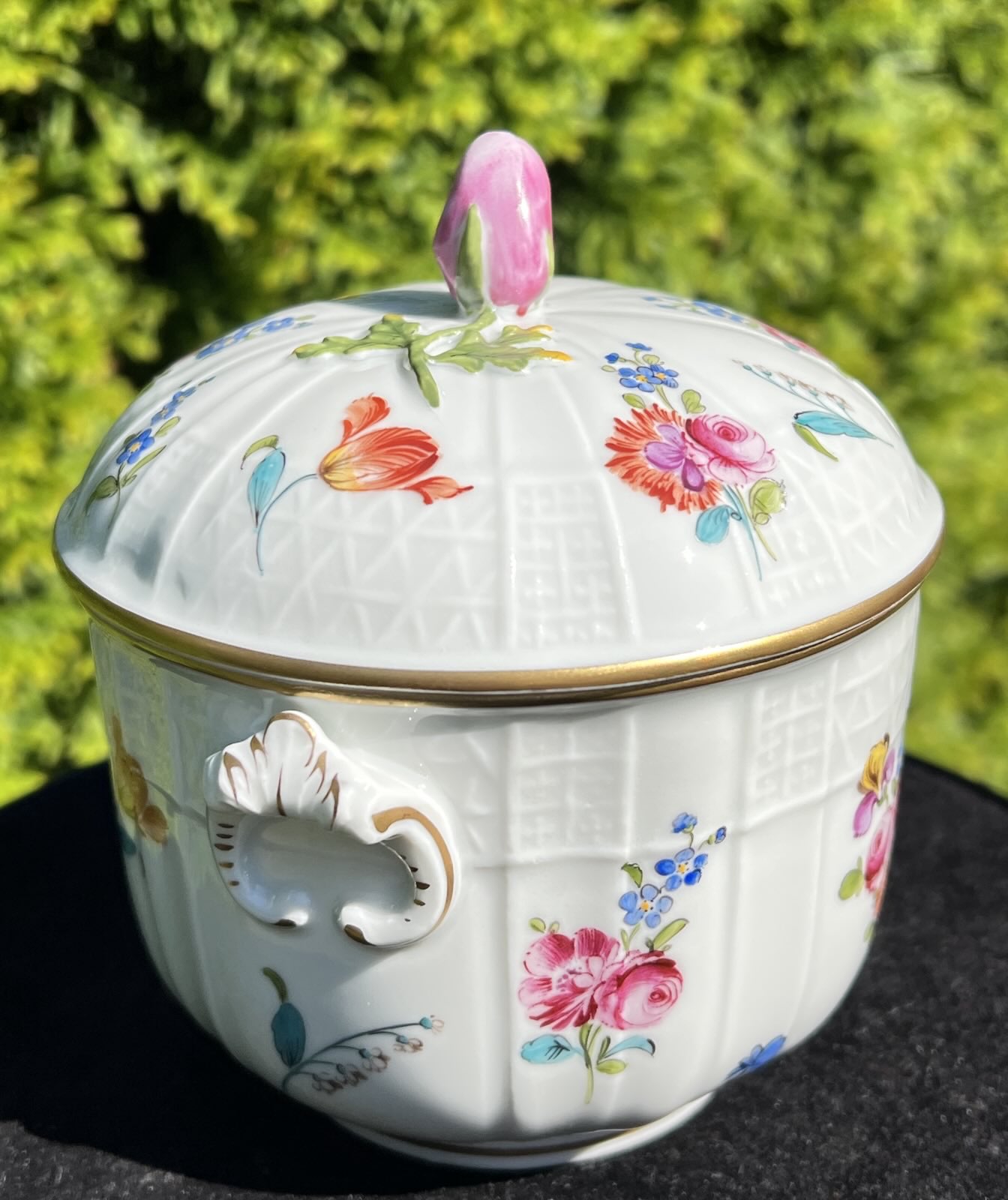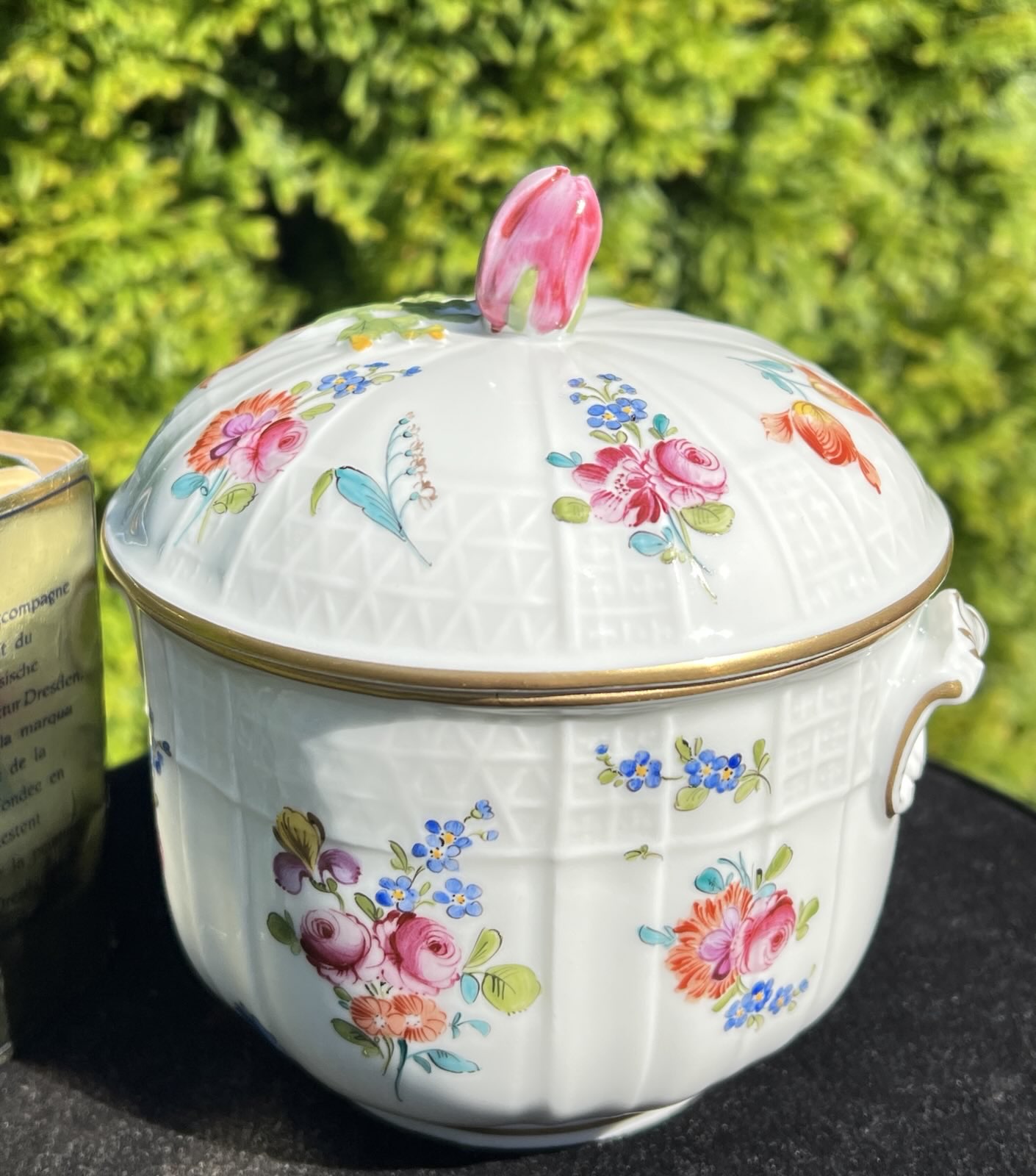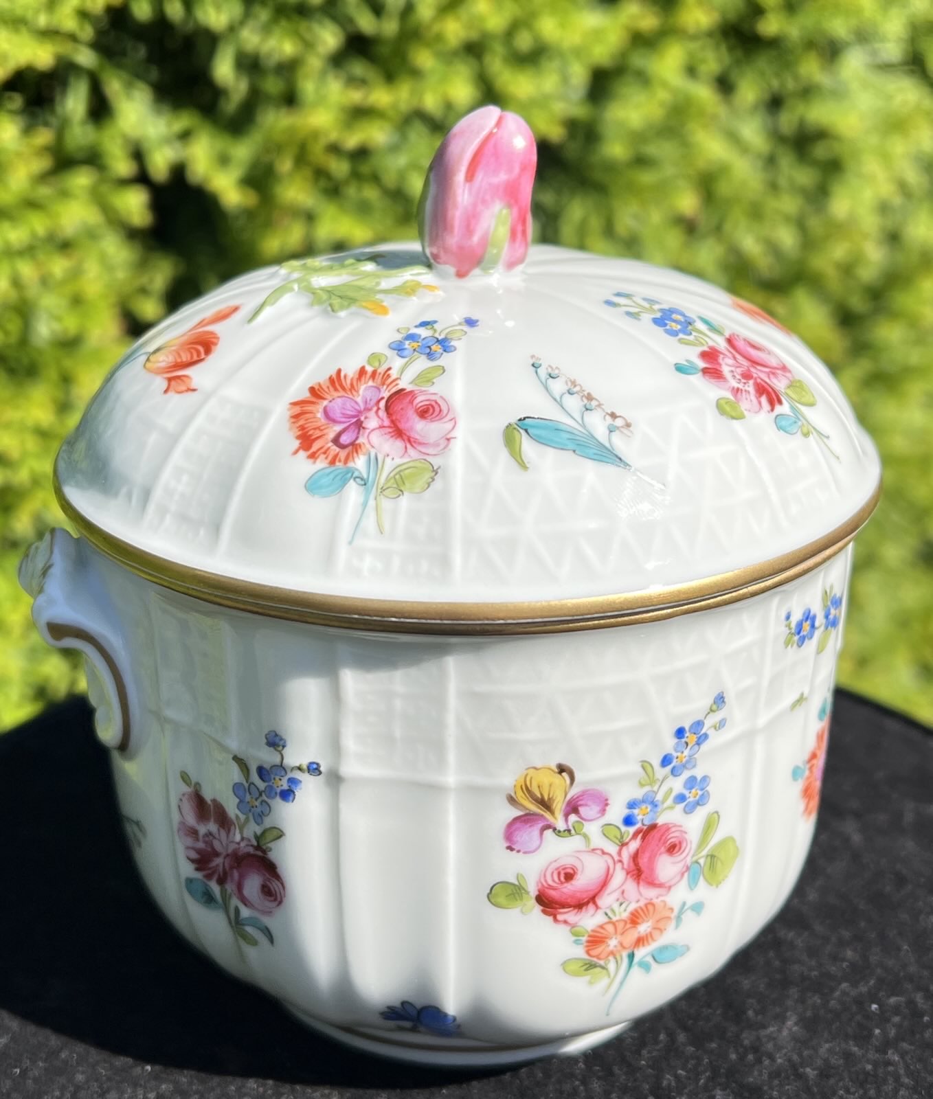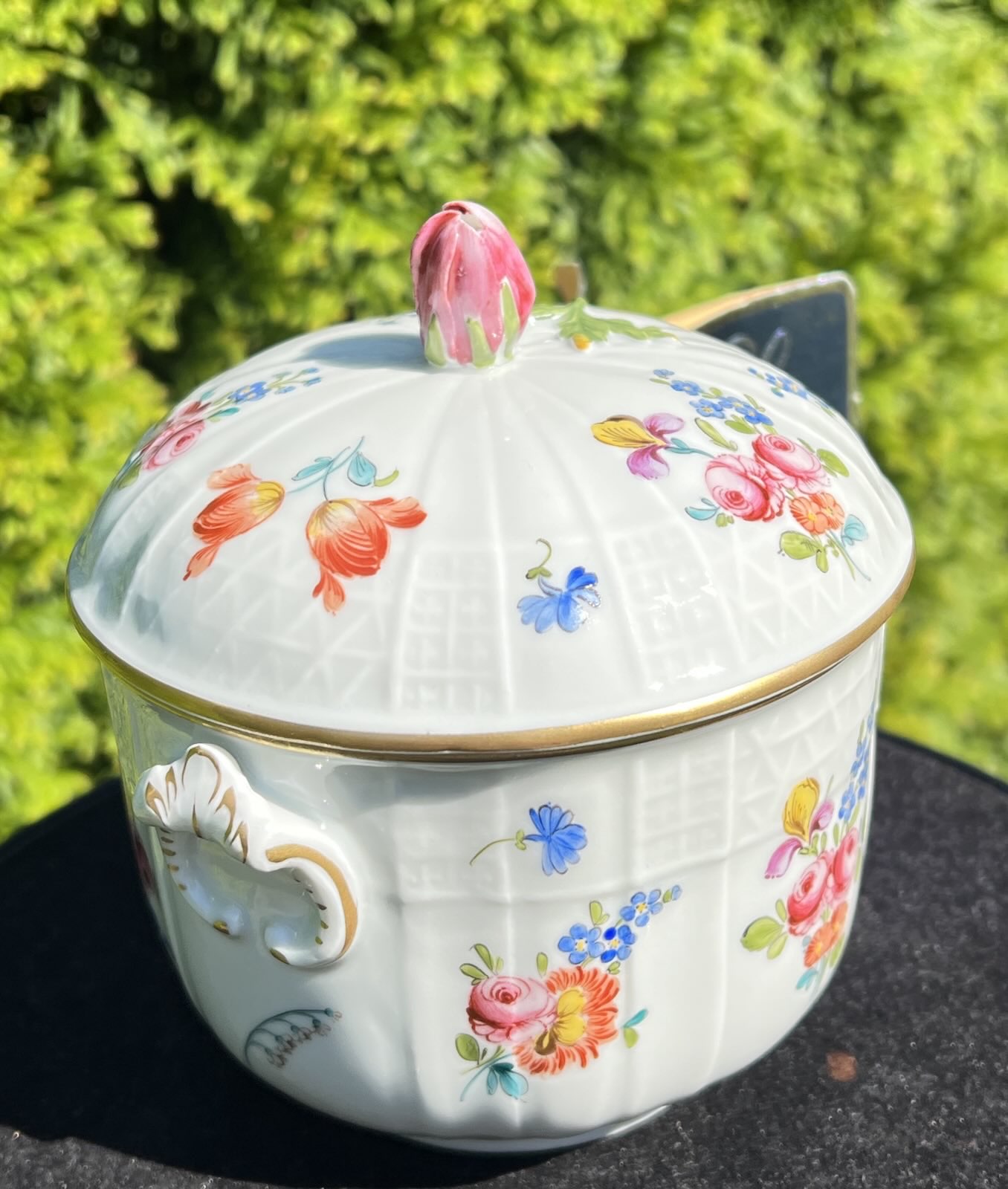 Antike handbemalte Porzellan Schmuckschatulle aus Dresden Deutschland, mit Deckel, für Zucker, Süssigkeiten oder als Dekoartikel, Küchenutensil oder Sammlerstück.