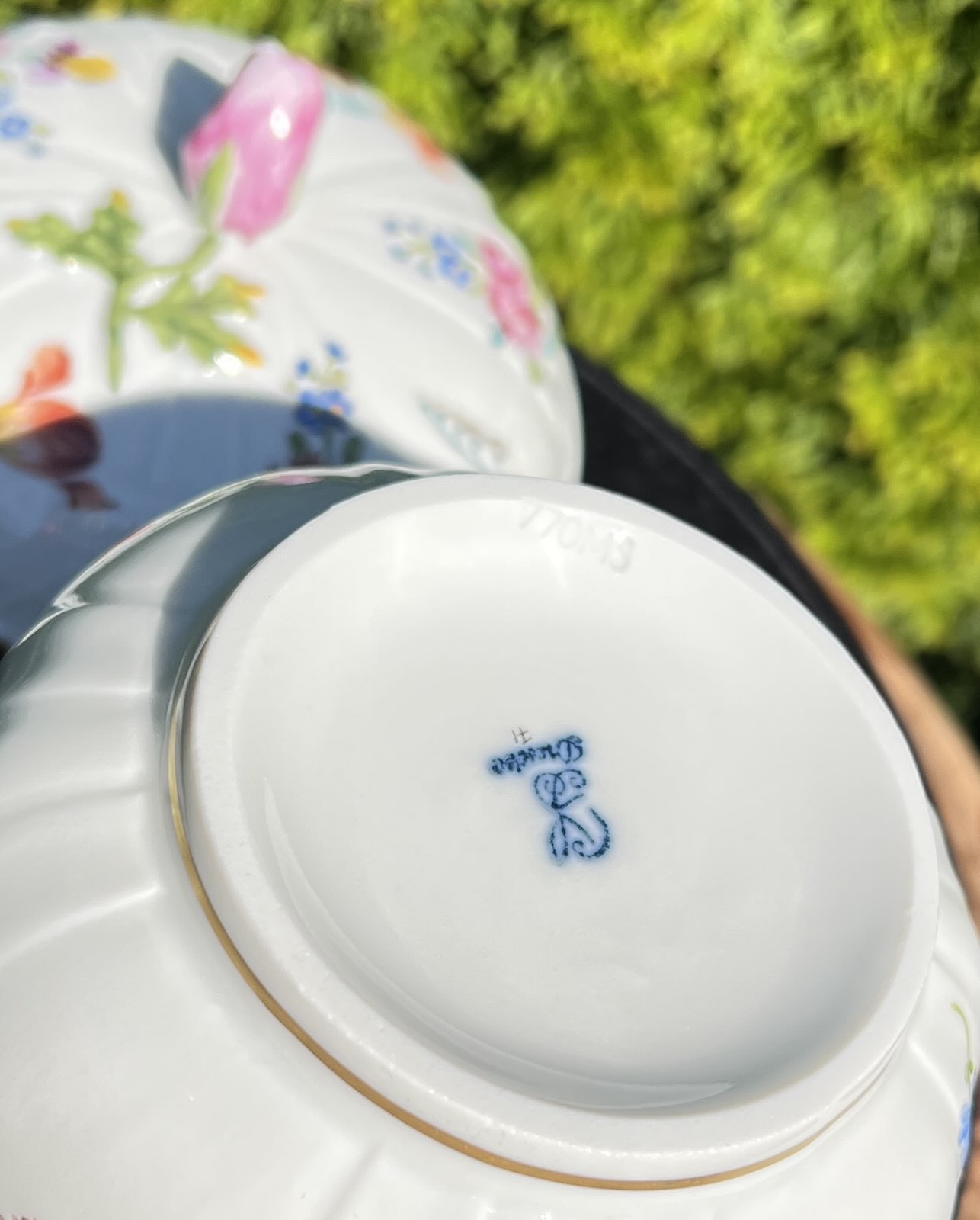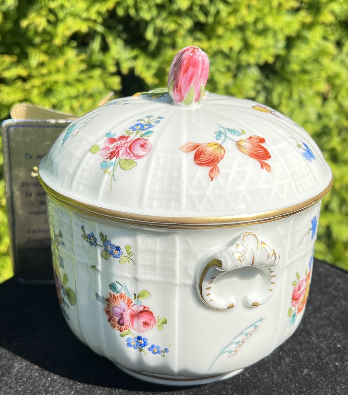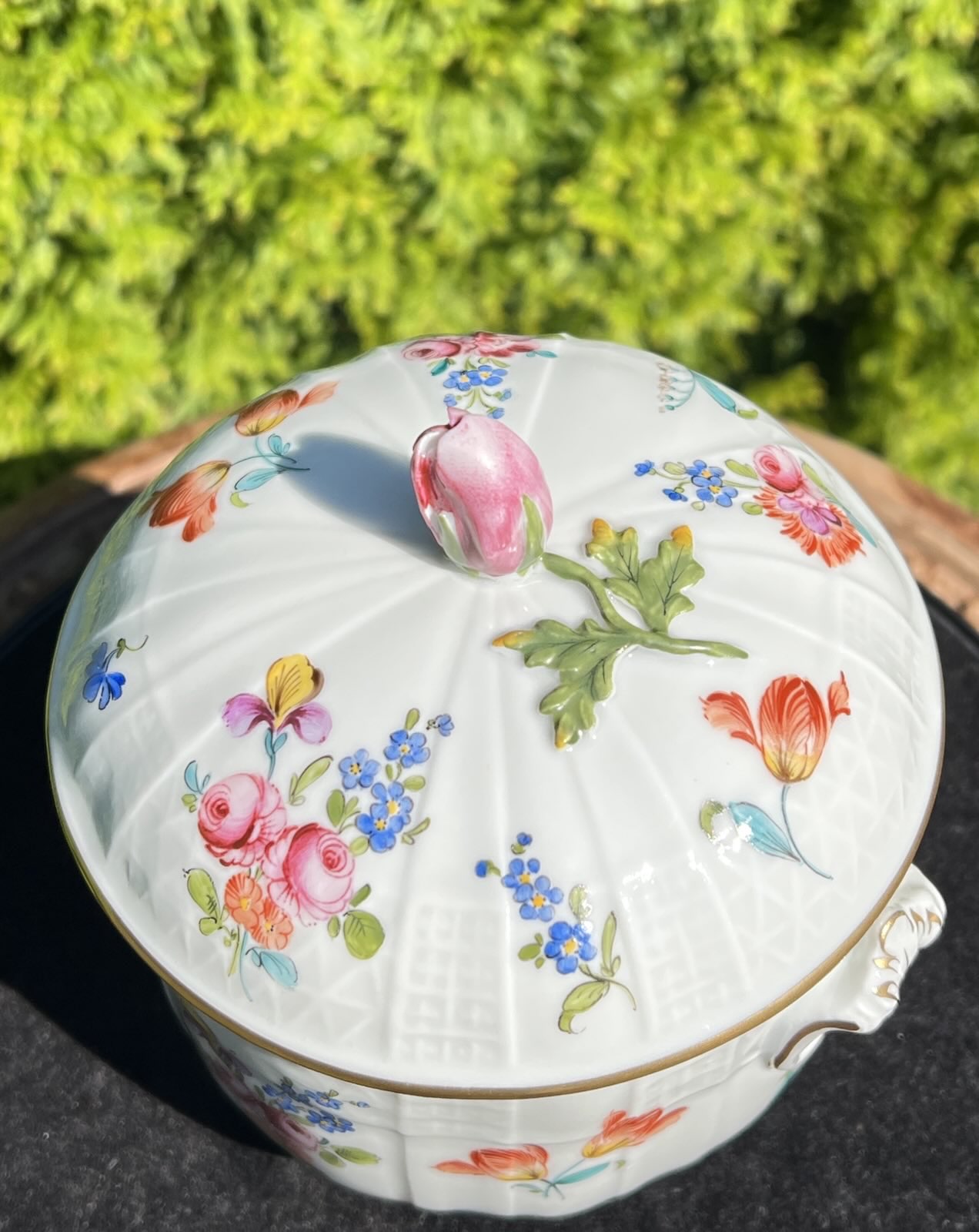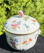 Antike handbemalte Porzellan Schmuckschatulle aus Dresden Deutschland, mit Deckel, für Zucker, Süssigkeiten oder als Dekoartikel, Küchenutensil oder Sammlerstück.