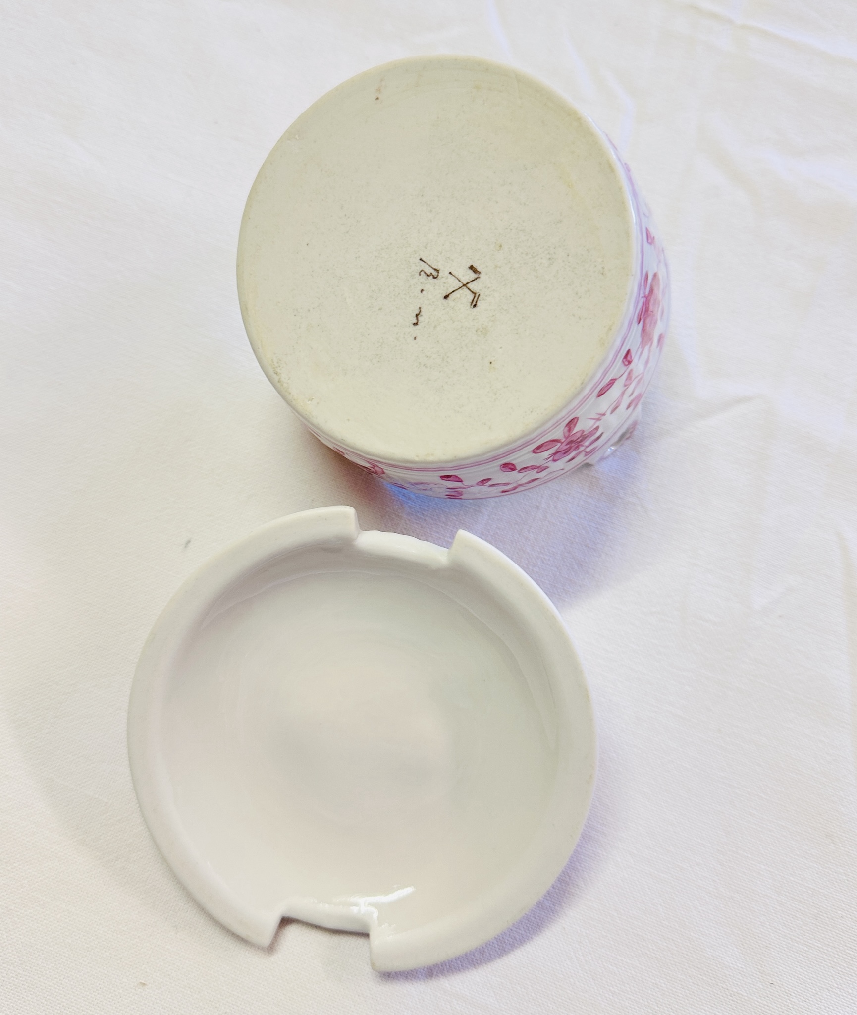 Zustand: Keine Beschädigungen, keine Glasurrisse. Aufgrund des Alters weist die Dose leichte, natürliche Gebrauchsspuren auf,siehe Fotos.