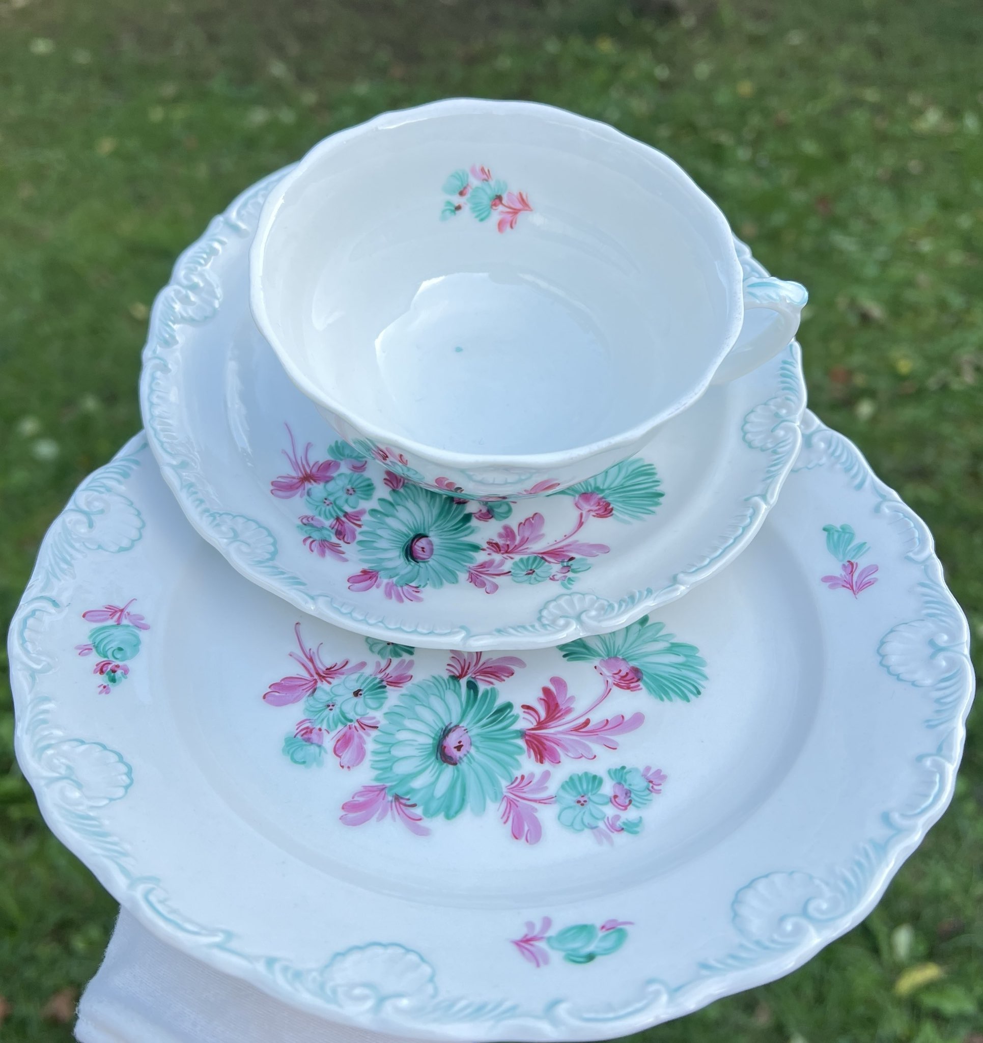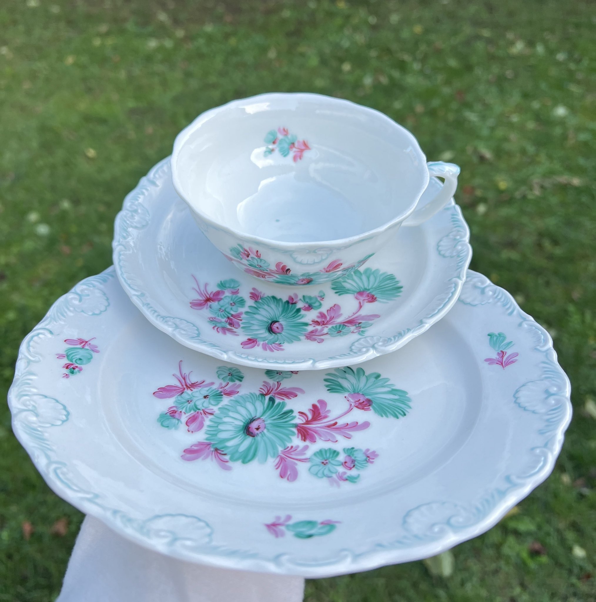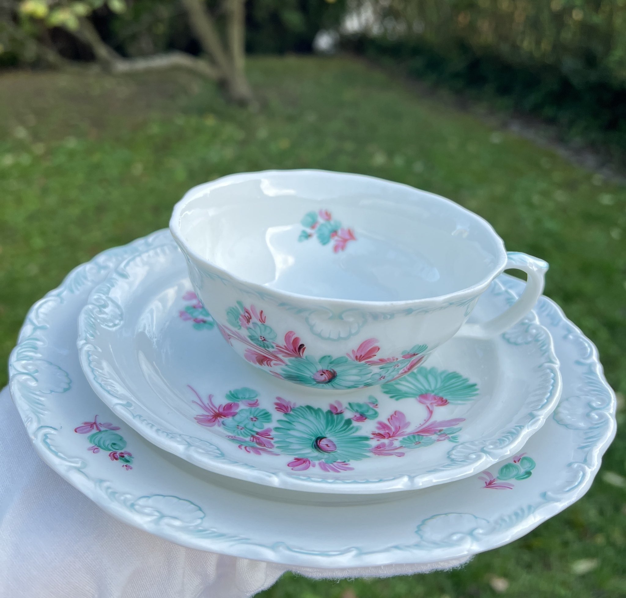 • 1 x Untertasse, 1 x Kaffeetasse, 1 x Dessertteller