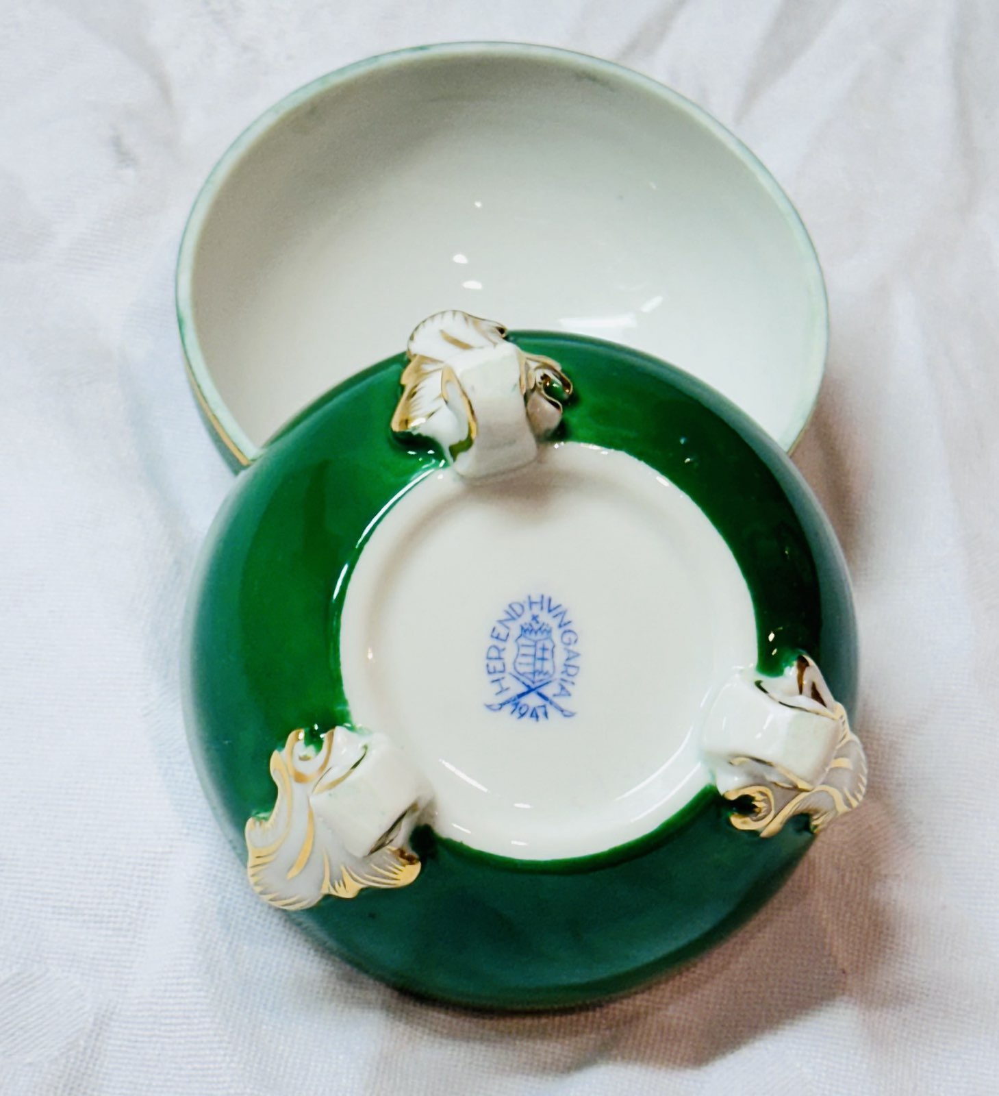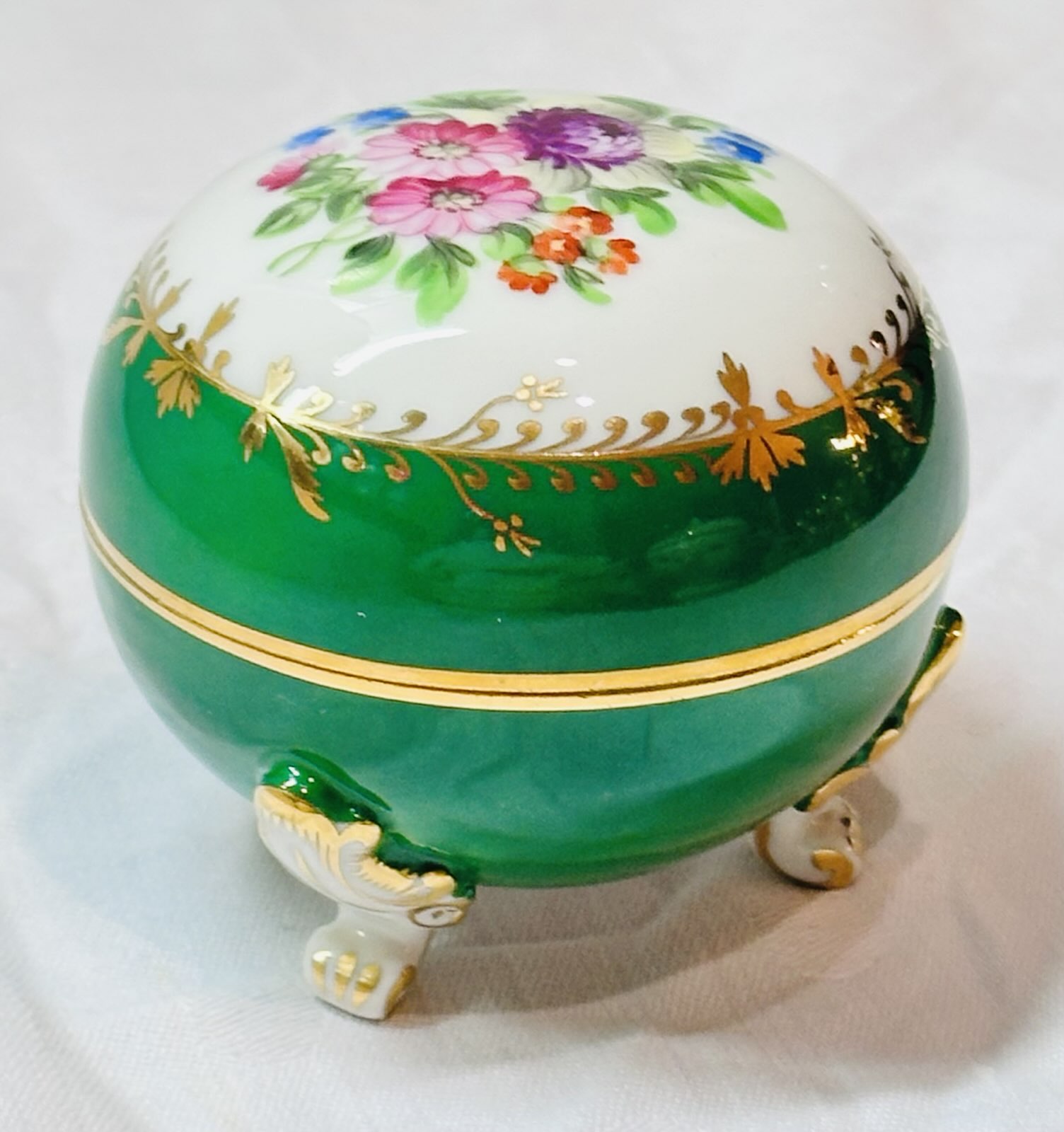 Herend «Bouquet de Saxe» dreibeiniges kleines Runddöschen 1947