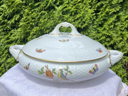 - Hutschenreuther ist besonders bekannt für das Zwiebelmuster Dekor, eine blaue Unterglasurmalerei, die als eines der erfolgreichsten blauen Dekore in der Geschichte des Porzellans gilt.